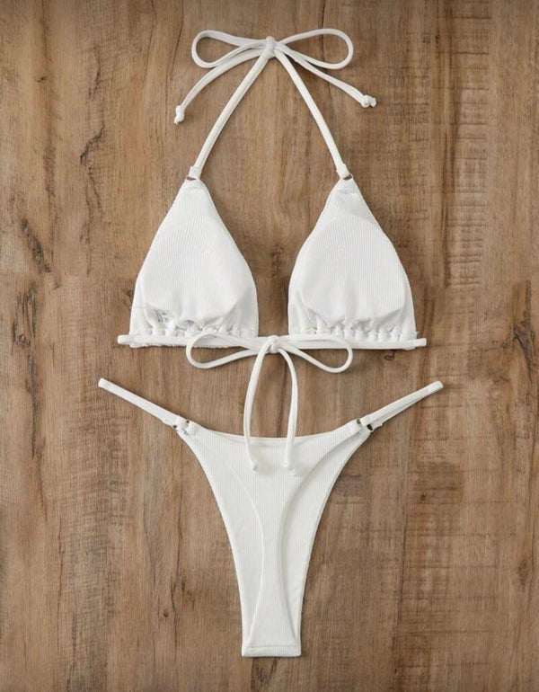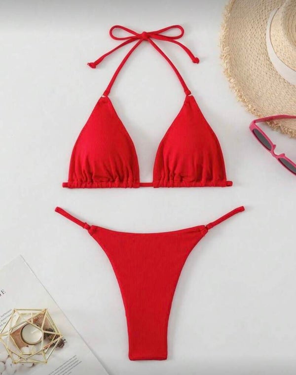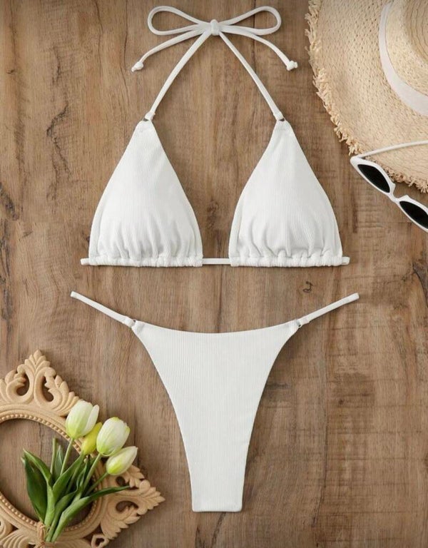 Damen String Bikini – Verstellbarer Triangel Bikini in Weiß, Schwarz, Rot & Rosa | Sommer Beachwear
